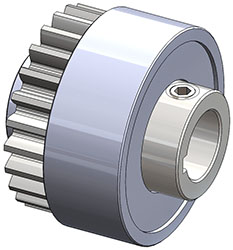 The 2875 overrunning gear clutch is based on our D93A roller clutch and features a 24 tooth, 24 pitch, 14.5° pressure angle gear. This clutch has a 3/8 inch (9.5mm) bore, the cam is screwed and/or keyed to your shaft, and power may be applied to the clutch through either the gear or the cam. These clutches can be used for many different applications and are the original equipment clutches for multiple brands of hot stamping machines. If you have special needs for your application please Let Us Know.