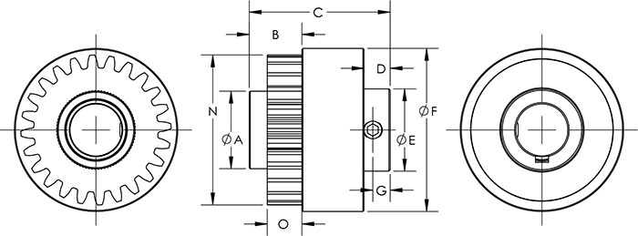 | Dimension B = | .38in | 9.7mm | Dimension G = | .13in | 3.2mm | Keyway = | 3/32in | 2.4mm |